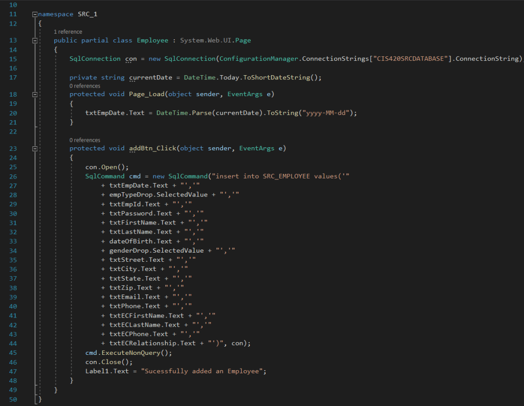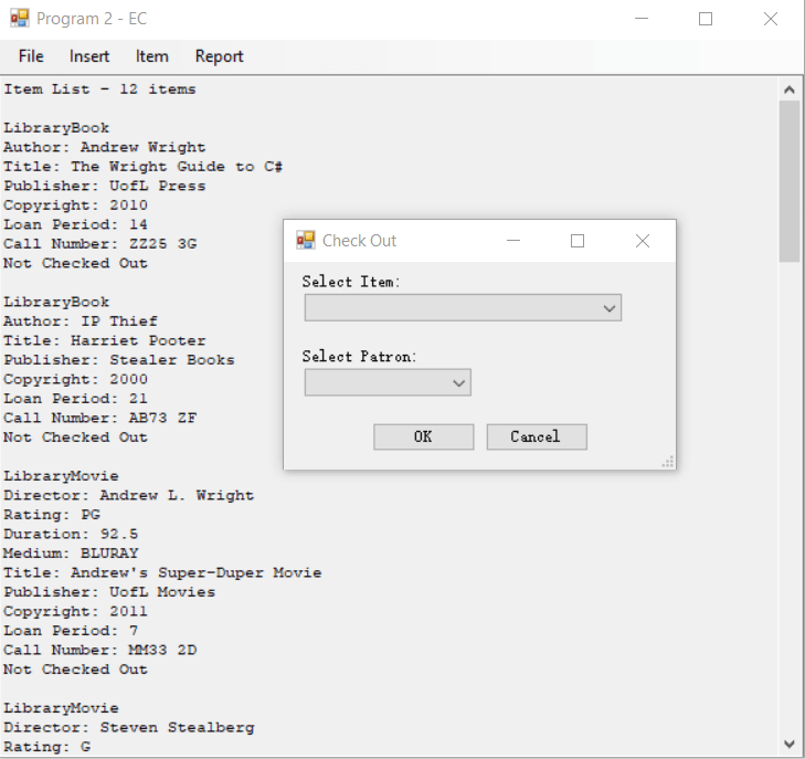 C#/.NET Work Final Project – SRC Website Login Page – For Employees and Customers Employee Page – Add employee code and interface Update member information code CIS 200 Programs Library Check out and return GUI Program Library Program Add Machine – User Interface Code For GUI Program Library Program Result Share this: Click to share on X (Opens in new window) X Click to share on Facebook (Opens in new window) Facebook Like Loading...